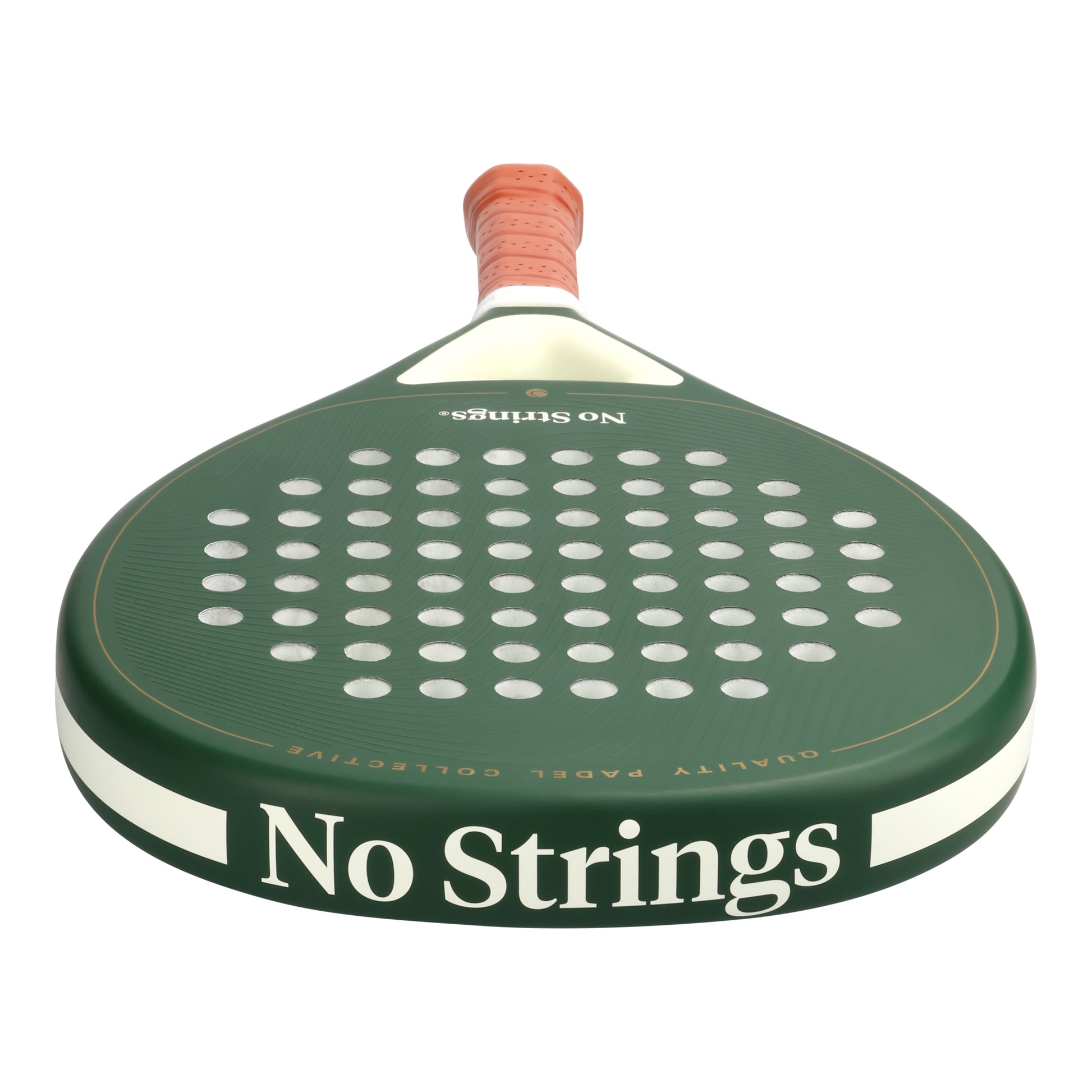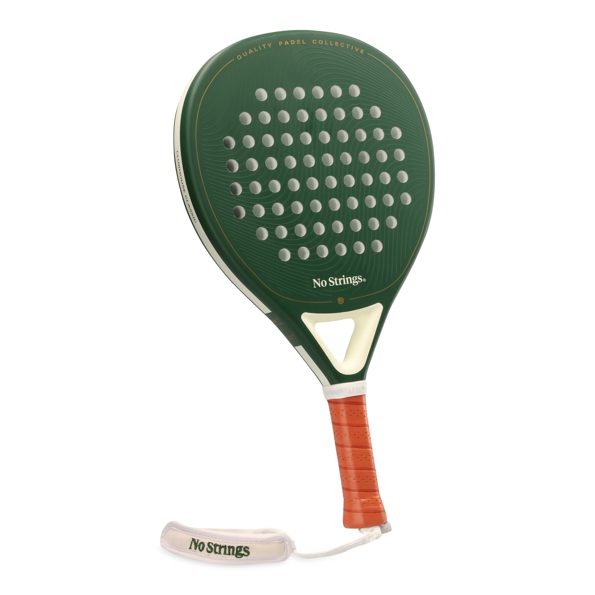 Featuring No Strings’ signature Heritage Green/Ivory Cream colourways and a pioneering soft-touch finish for extra grip on the ball, this versatile medium-balanced racket was designed for players of all levels, serving power without compromising on control.